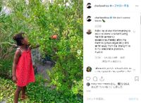 そんなシャーリーズが休暇中に訪れた際に撮影した、髪を後ろでアップにまとめた赤いワンピースを着た子どもの写真を投稿。どうやらリンゴ狩りをしたようで、子どもはリンゴを掴んでいるが、「葉っぱはいらない」というキャプションからもわかる通り、木には葉っぱばかりでほとんどリンゴはついていない。