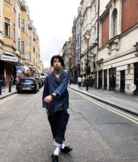 普段から、パンクやスケーター、モードなど、様々なジャンルを行き来しながら、“攻め”スタイルを追求する彼だが、劇中でのファッションも目を引く。「お母さんの服を勝手に着ている設定」として、レディースのピンクや黄色のレースカーディガンを身にまとうなど、ジェンダーレスな着こなしを披露。その他、川辺を白い短パン一枚で無邪気に過ごすなど、自由奔放なタロウを全身で表現している。