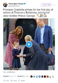2017年、ジョージ王子が同じ学校に初登校した際には、キャサリン妃は、第3子となるルイ王子を妊娠中で重度のつわりに悩まされており、3ショットはかなわなかったが、今回は、ウィリアム王子とジョージ王子が手をつなぎ、キャサリン妃とシャーロット王女が手をつないで、8時20分ごろに4人で仲良く学校に到着。校長の出迎えを受けた。
