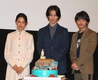 9月12日(木)、映画『いなくなれ、群青』の大ヒット御礼舞台挨拶が新宿バルト9にて開催され、横浜流星、松岡広大、柳明菜監督、菅原大樹プロデューサーが登壇。16日が誕生日の横浜に、サプライズでケーキが贈られた。