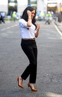パトロンを務めている、失業中の女性の社会復帰を支援する「Smart Works」からカプセルコレクションを立ち上げたメーガン妃は、友人のミーシャ・ノヌーとコラボした、120ポンド(約1万6200円)のシンプルな白いブラウスに同額のジグソーの黒いスラックス、茶のラルフローレンの85ポンド(約1万1500円)のベルトに、563ポンド(約7万6000円)の茶のマノロ・ブラニクのパンプスというシンプルな装いで発表会に出席。いきいきとした表情でスピーチをこなしたが、「息子のためにもう帰らなくてはいけないのです。お食事の時間なので」と言って、早々に会場を後にし、自宅のフロッグモア・コテージへと帰っていったという。
