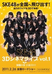 そんな現状にやきもきしていたSKE48ファンに朗報だ。何と彼女たちのライブ公演が3D映画『SKE48 3Dシネマライブvol.1「制服の芽」公演2011』となって、2月26日(土)より全国の映画館で公開されることになったのだ。