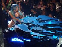 ガガといえば、2011年に厚底ブーツのガガが、ステージ上の燃えさかるピアノの上でエアギターを弾きながら誤って落下し、転倒するというハプニングが発生。1メートル以上も下の舞台に落下して思い切りお尻を打ち付けたが、その際にもすぐにパフォーマンスを復活しプロ根性を見せた。