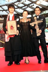 エリック・クー監督製作総指揮のオムニバスホラーの1本、『フォークロア TATAMI』で、初めてホラー映画のメガホンをとった斎藤は、TIFFの常連だ。今年は畳の怪しいオブジェを手にしていて、作品の世界観をアピール。主演の北村一輝が持っていたのもわら人形で、2人で異彩を放っていた。