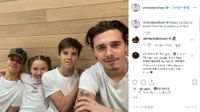 ヴィクトリアが投稿したのは、ブルックリン、クルス、ハーパー(8)、そしてロメオが並んで座っている写真で、男子3人は微笑んでいるが、ツインテールのハーパーは、歯を見せて満面の笑みを浮かべている。