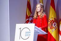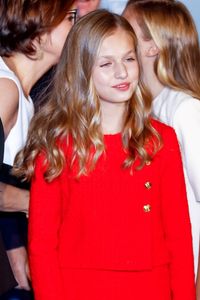 レオノール王女と妹のソフィア王女は、母親と被らないように紺とブルー系でまとめていたが、翌日、先月31日に14歳になったばかりのレオノール王女が、なんと真っ赤な上下のアンサンブルに赤いローファーという装いで登場し、スピーチを行った。