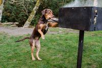 食い意地もすさまじく、米粒ほどのチーズのかけらをねだるのも全力!はるか彼方の自宅を目指す道中でお腹がすいて、BBQをしている家族から肉を盗む場面では、どこか申し訳なさそうな顔をしたくせに特大サイズの肉を盗むちゃっかりもの。