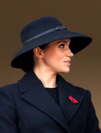 そんなメーガン妃は、昨年はチークの赤さが目立つメイクで不評を買ったが、今年はそばかすの目立たないハリウッドセレブメイクで登場。アップにしたヘアスタイルに、リボンが付いたスティーブン・ジョーンズの黒い大きな帽子で後れ毛はゼロ。レースの黒いドレスの上から着ているのは、昨年フランス発のジバンシィ着用でひんしゅくを買ったのを反省してか、今年は英国発ステラ・マッカートニーの1545ポンド(約21万5000円)の黒いダブルのコートという装い。引き続きベルト付きだが、今回はぴっちりと締め上げ、だらしがないイメージを払拭したセレブスタイルで、胸に赤いポピーのブローチをつけて戦没者に感謝の意を表した。
