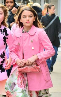 ファッショニスタとして有名なトム・クルーズの娘スリは、一時期ブルーや紫にもハマっていたが、やはり昔からのピンク好きは健在の様子。2匹の愛犬とピンクコーデでお散歩する様子をパパラッチされている。
