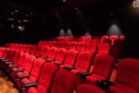 「WHITE CINE QUINTO」というネーミングの通り白を基調とした外観に、チケットの発券機とコンセッションのカウンター、シアターへの入口がまとまったコンパクトな作り。そしてシアター内に入ると赤いシートと木目調の壁の落ち着いた空間が広がっており、前方5列・後方3列の計108席(+車椅子スペース1席)はいずれも前の列との間隔がゆったり取られ、リラックスして映画を楽しむことができる。