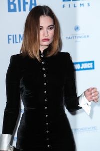 ブルーのドレスのウエストは驚くほどスリムだった 画像はLily James(@lilyjamesofficial)公式Instagramのスクリーンショット