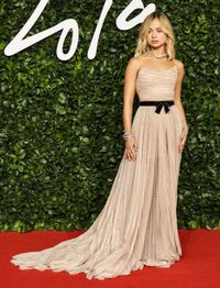 英国ファッション評議会が主催し、イタリア発ボッテガ・ヴェネタが主要4部門で受賞した同授賞式で、アメリアは、アルベルタ・フェレッティのセカンドラインとしてアエッフェ社が立ち上げたイタリア発フィロソフィ・ディ・ロレンツォ・セラフィニのアシンメトリックなベアトップに、黒い腰のリボンがアクセントのスパークリングドレスという装いで、スワロフスキーのイヤリングやネックレス、ブレスレットと、シンプルながら煌びやかな出で立ちでレッドカーペットを歩いた。