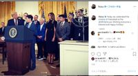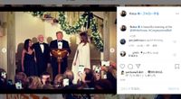 ネックからヒップラインにかけて煌びやかなビーズがちりばめられただけのシンプルなデザインだが、長身のメラニア夫人が着ると圧巻の美しさで、イギリス訪問時の黄色いケープコートドレスとは違って評判も高かった様子。