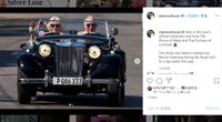 ウィリアム王子の横に立っているキャサリン妃は、前髪をアップにしたウェービーヘアに英国発ボーデンのブルーに白いプリント地のエレガントなラップドレスだが、お値段はわずか180ドル(約1万9700円)とプチプラ。夏のバケーション中のひと時を捉えたアットホームな雰囲気の写真には絶賛の声が寄せられているが、サングラス姿のチャールズ皇太子とカミラ夫人も、なんとレトロカーに乗っている写真をチョイスしているのだ。