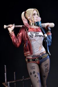 太ももには複数のタトゥーが入ったハーレイ“らしさ”満点のアイテムだ SUICIDE SQUAD and all related characters and elements [c] & TM DC Comics and Warner Bros. Entertainment Inc. WB SHIELD: TM & [c] WBEI. (s16)