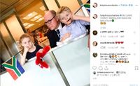 南アフリカのファミリー向け雑誌「Huisgenoot」の12月号のインタビューに答えたもので、表紙の写真は、黒いインナーにバーガンディのスーツトップスに、サイドを遊ばせた左右2:8分けのヘアスタイルのシャルレーヌ公妃が、ソファーのへりに座っている黒いワンピースにロングヘアのガブリエラ公女とその横に座っているワンコ、ソファーに座っている白と黒のボーダーシャツを着たジャック公子を後ろから抱きしめているショット。公妃たちはカメラ目線だがワンコは素知らぬ顔と、なかなか微笑ましいショットに仕上がっている。