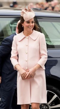 季節を問わず、美脚の映えるミニ丈がお好みなキャサリン妃。妊娠中でも膝上丈が多く、ほっそりした脚を見せることで、全体の印象を引き締めていたのが印象的だ。第2子のシャーロット王女、第3子のルイ王子の妊娠中、お腹の大きな時期に着用していたコートも、その多くが膝上丈だった。