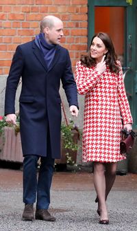 お気に入りと思しき深緑のロングコートは他にもある。襟と袖口の黒いファーが印象的なグリーンのコートは、2018年1月のスウェーデン王室訪問時と、二か月後のセント・パトリック・デイのセレモニーに続けて着用していたもの。ルイ王子妊娠中の時期、大きな行事に臨んで選んだとあれば、この一着は妃の「勝負コート」といえるかもしれない。こちらもお気に入りブランド、キャサリン・ウォーカーの品で、黒と深いグリーンの重みが、大イベントでも存在感を発揮していた。