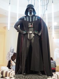 店内に入ってまず目に飛び込んでくるのが、中央で仁王立ちをするダース・ベイダー。至近距離での対面に思わず興奮…!また壁一面には様々なコンセプトアートが貼られており、どれも一つずつゆっくりと見たくなるような貴重なものばかり。さらにスクリーンには「スター・ウォーズ」シリーズのイメージ映像が上映されていたりと、ファンにはたまらない空間が広がる。