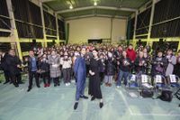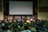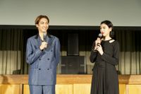 この日試写会が行われたのは、まさに“犬鳴村”があると言われている福岡県宮若市にある、すでに廃校となった小学校の体育館。本作の一部が宮若市の協力のもと、旧犬鳴トンネルで撮影されたこともあって今回のイベントが実現したとのこと。会場に詰めかけた200名以上の宮若市民からあたたかく迎えられた三吉と古川は、少し照れた表情を浮かべながらも笑顔で登壇した。