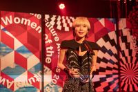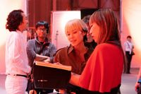 この日訪れたのは、本作のオープニングシーンでリミが賞を受ける華やかな「Women of Future Awards」パーティの会場セット。東宝スタジオに作られた巨大な豪華セットは、セットデザイナーとして活躍するENZOが美術を手掛けており、中央には幻想的な美しい桜の木が置かれ、ところどころにピラミッド型のオブジェを配置。赤、ピンク、黄色など様々な色の照明が照らされ、レッドカーペット上を歩くリミ役の中谷と、リミのマネージャーゆる子役を演じる金子を大きなクレーンカメラが追いかける。