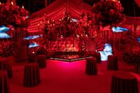 さらに奥に入ると、リミのスピーチシーンで使用されるもう1つの会場内セットが。大量のバラが装飾で吊るされ、赤を基調に細部までこだわり抜かれた魅惑のセットは“蜷川実花らしさ”が全開!劇中でも印象的に使われるこのパーティシーンは4日間にわたって撮影され、エキストラはのべ630人が参加。奥では可愛らしいロングワンピースを身にまとった蜷川監督がモニターチェックをしており、笑顔を交えて、終始リラックスした雰囲気で撮影に臨んでいる姿が印象的だった。Netflixの関係者も驚いたというほど本作の現場には女性スタッフが多く、自由に意見を言い合える雰囲気があるのは、いいアイデアをどんどん採用したいという蜷川監督の現場だからこそ。