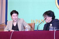第92回アカデミー賞で作品賞、監督賞、脚本賞、国際長編映画賞の最多4部門受賞の快挙を果たした『パラサイト 半地下の家族』(公開中)の凱旋来日記者会見が2月23日に日本記者クラブで開催され、ポン・ジュノ監督と主演のソン・ガンホが出席。ジュノ監督は「この映画に対して、熱く反応してくださった日本の観客の皆さまに感謝を伝えたい」と笑顔で挨拶し、1時間にわたる会見で受賞の喜びや、映画づくりにおける目標などを語った。