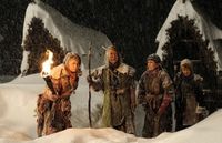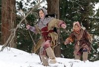 撮影は『おくりびと』(08)の撮影も行われた山形県庄内地方の庄内映画村で、豪雪の1、2月に気温マイナス11度という過酷な状況の中で行われた。何とそれだけではなく、彼女たちは雪崩などの自然の脅威や、体長2mのクマとの壮絶なバトルシーンにも体当たりで挑んでいる。『地上最強のカラテPART2』(76)で巨大クマと戦い、“クマ殺し”の異名を持つ格闘家ウィリー・ウィリアムスではないが、老女たちが果敢にクマに立ち向かう様は必見だ。