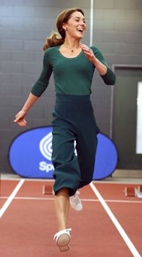 ロンドンのオリンピック・パーク内にあるロンドン・スタジアムに到着した際には、御用達のスマイスのネイビーのジャケットにウェービーヘアだったキャサリン妃だが、陸上トラックでスタートの実践やテコンドーに挑戦した際には、ヘアを後ろで1つにまとめ、ジャケットの下に着ていたマンゴのリブニットのトップスに、ザラのワイドパンツという新品かつグリーンのセットアップという気合十分な装い。「お手頃価格でも、着こなしてしまうのはさすが」「なんでも似合う」と相変わらずの評判だ。