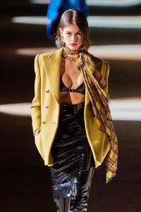 シンディ・クロフォードの娘カイア・ガーバー(18)が、パリ・ファッションウィークのサンローラン・ショーで披露したラテックスブラ姿がちょっとした話題を呼んでいる。