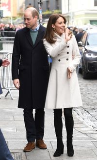ウィリアム王子とキャサリン妃が、英国がEUを離脱して初めて2泊3日の日程でアイルランドを訪問。1日目は高価かつ新品のアイテムが多く色味もオールグリーンだったが、2日目は一転。2008年、まだウィリアム王子と婚約する前に着ていたオフホワイトの自前コートで、英国発リースのダブルのコートに黒いスキニージーンズとアンクルブーツで、若者のメンタルヘルスをサポートするアイルランド・ナショナル・センターを訪れた。