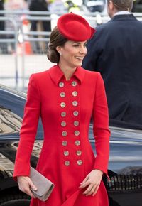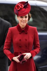 昨年に続いて赤をチョイスしたキャサリン妃のAラインのダブルコートは、襟やポケット、袖がベルベット素材のキャサリン・ウォーカーのもの。2018年にファブ4でクリスマス礼拝に登場した時のコートなのだ。アップにしたヘアスタイルに似合うサリー・アン・プローヴァンのバラをモチーフにしたファシネーターに、プラダのベルベットのクラッチバッグ、ジャンヴィト・ロッシのスウェードパンプスもオールバーガンディでセットアップ。またもや、クラシカルでエレガントなコーディネートで人々を魅了した。
