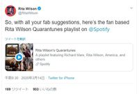 リタが自身の公式ツイッターで明らかにしたもので、隔離、孤独などをテーマにした音楽を32曲ピックアップ。リチャード・マークスの「Right Here Waiting」、キャロル・キングの「So Far Away」をはじめ、自身の曲もチョイスしている。