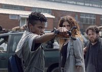 サシャの兄タイリースは、射撃は下手だが腕力が強く、ハンマーやナタの名手。中でもハンマーが威力を発揮するのがシーズン4第3話「集団感染」だ。ダリルやミショーンたちと薬品を探しに外に出てウォーカーの群に囲まれた際、愛するカレンを失って生きる目的を失っていたタイリースは、自己犠牲になる覚悟で「ここは任せろ」と言ってみんなを先に行かせて、ハンマーでヤケクソの大暴れ。ところが何と、生き残る。彼自身の想定よりも、観客の予測よりも、怪力ハンマーの威力は絶大。