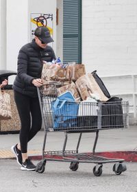 これから続く不要不急の外出禁止に備えるためか、スパッツにスニーカー、ダウンジャケットに野球帽とサングラスというオールブラックのシャーリーズ・セロンが、禁止令発動の翌日に、娘として育てているジャクソン(8)とオーガスト(3)の2人を連れて、スーパーでお買い物。ピンクのトップスに紫のショートパンツ、スニーカー姿のジャクソンと、ピンクのTシャツにシルバーのジャケット、黒いスパッツにスニーカー姿のオーガストと一緒に、買い物を済ませて、自ら持参したエコバッグと紙袋を大量に乗せたカートを押して、車に戻る様子がパパラッチされている。