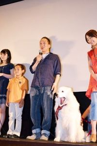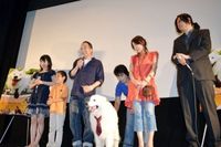 主役を演じた小日向は、「本日はいろんな大作映画が公開されるなか、本作をご覧いただきましてありがとうございました。この映画は特に大事件が起こるわけでもなく、ある一家の日常を淡々と描いた作品ですが、このサモンを見ていただければわかるように、癒しの効果が抜群の内容になっています。ほっこりと優しい気持ちになっていただけると幸いです」と感謝の言葉を述べ、さらに「劇中では犬嫌いな役どころだけど、本当は家でもトイプードルを飼うくらい、犬が大好きなんです。だから、犬飼とサモンがだんだん心を通わせていく場面はお芝居じゃなくて、本当に僕たちが仲良くなっていく姿を映しているんです。どんなNGを出しても許せてしまうくらい、サモンは本当に可愛かったですね」と裏話も明かしてくれた。
