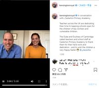 今回2人がビデオ通話を行ったのは、カスタートン・プライマリー・アカデミー。イギリスでは学校は休校となっているが、医療従事者や生活に不可欠な仕事をしている親を持つ子どもたちを預かっている。イースターを前にバニーの耳飾りをした子どもたちと楽しげに話したり、教師たちを激励する様子を捉えた動画がケンジントン宮殿のインスタグラムに投稿されている。