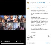 王室の公式インスタグラムには、カール16世国王と妻シルヴィア王妃夫妻、ヴィクトリア皇太子とダニエル王子夫妻とエステル王女とオスカル王子、フィリップ王子とソフィア妃夫妻とアレクサンダー王子とカブリエル王子、そしてフロリダ在住のマデレーン王女とクリストファー夫妻、レオノール王女とニコラス王子、アドリアンネ王女の4家族が掲載されているが、集っているわけではなく、自宅内や庭でラフな出で立ちでそれぞれの家族がビデオチャットでお祝い。ビデオにはお互いにイースターを祝いあい、エステル王女がiPadに向かって手を振る様子なども捉えられている。