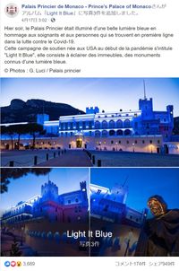 また、ニューヨークなどでも行われているが、医療従事者への感謝と敬意を表して、モナコ大公宮殿をブルーにライトアップした様子も掲載されている。