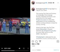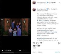 この日の午後7時から10時までオンエアされた同番組は、新型コロナウイルスのための寄付を募る目的で企画された長時間特別番組で、ウィリアム王子がサプライズで登場。スティーヴン・フライとリモートの掛け合いの後、今度は午後8時少し前にウィリアム王子、キャサリン妃、ジョージ王子、シャーロット王女、そしてキャサリン妃に抱かれたルイ王子が家の前に登場し、約1分間にわたって拍手で医療従事者らを称えた。