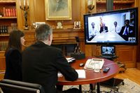 2人が訪れたのはマドリッドにある112 Emergency Centerで、他の出席者とはソーシャルディスタンスを保ち、手袋とマスク姿で新型コロナウイルスの犠牲者に黙とうをささげた。
