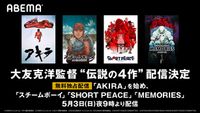 今回は5月3日の『AKIRA』を皮切りに、5月10日(日)の『スチームボーイ』(03)、5月17日(日)の『SHORT PEACE』(13)、5月24日(日)の『MEMORIES』(95)の4作品をそれぞれ夜9時から配信。大友監督が描く緻密で美麗な映像世界をこの機会に存分に楽しんでほしい。
