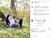 またもう一枚の写真は、森林の中で、白いトップスとレアなジーンズ姿で地面に座り笑顔で茶色い子犬のリオを抱っこしているヴィクトリア皇太子、その前で満面の笑みを浮かべているオスカル王子、ヴィクトリア皇太子の後ろで膝を立てて中腰になっているダニエル王子と、その膝に座って歯を見せて笑っているエステル王女の5ショットだ。よく見ると、オスカル王子の紺のジーンズはママとコーデ、ジャケットも紺でオール紺色の装い、エステル王女は薄いベージュのダウンジャケットに白いパンツと紺のスニーカー、ダニエル王子もオール紺の装いだ。