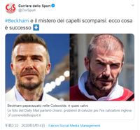 2年前に、V字の生え際が突然フラットになり増毛疑惑が浮上していたデイヴィッド・ベッカムが、帽子をかぶらずに街に繰り出した一瞬をパパラッチされ、疑惑が確定となってしまったようだ。