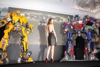 記者会見ではマイケル・ベイ監督が東日本大震災に触れ、「テレビで見て大変心を痛めていましたが、日本の皆さんはとても勇気があり、粘り強い。被災地で頑張っている人々たちこそ真の英雄だと思います」と、被災地の方に励ましの言葉を贈った。サム役を演じたシャイア・ラブーフは「まいど!」と陽気に挨拶、これが二度目の来日となるロージーも「おはようございます。私はロージーです、お元気ですか?」と負けじと日本語を披露してくれた。