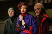 他にも、ドクタケ忍者隊の首領・稗田八方斎役の松方弘樹も、くの一教室の山本シナ先生に扮した中村玉緒も、素晴らしいほどに思い切り弾けている。シナ先生が忍術で変身した姿が、杏という無茶ぶりな設定もまさに愉快。カリスマ髪結い師・斉藤幸隆役の鹿賀丈史も、眉の剃り加減が絶妙すぎる。