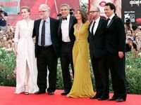 【写真】監督、脚本、主演を兼ねた新作『The Ides of March 』でヴェネチア国際映画祭に出席したクルーニー(中央) [c]GLOBE PHOTOS/AFLO