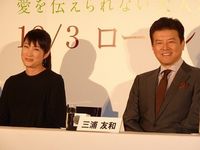 余貴美子は、今回、三浦演じる徹の妻・佐和子を演じた。これまで幾度も共演してきたふたりにお互いの印象を尋ねた。三浦は「最初から、僕は奥さん役には余さんでと思っていたんです。でも、お返事いただけるまで1ヶ月以上かかって、嫌われてるんだなと思っていたんですが(笑)。今、50代の中で一番魅力的な女優さんです。今回、共演が実現できて嬉しいです」とラブコールが叶って満足していた。一方の余は「ありがたいお言葉、ありがとうございます」とコメントし、「三浦さんとはこれまで、三浦さんを殺したり、憧れの先輩だったりしました。友和さんは人の気持ちを察してくれる優しい方。三浦友和様の自伝を読んで、夫婦というものを考えてみたい。早く買わなければ。いただけるのかな(笑)?」と、先日発売された三浦の自伝本「相性」をPRする一幕も見られ、三浦からも笑みがこぼれた。