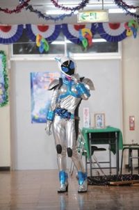 そして、既に話題となっているシリーズ初の女子高生ライダーの仮面ライダーなでしこ。仮面ライダーフォーゼと類似した変身システムを持ち、外観は女性っぽさがあるものの、フォーゼに似た雰囲気だ。