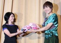 最後に、2月にボクシング全日本女子選手権に臨む山崎に、黒木、木村、真矢からピンクのサイングローブがプレゼントされた。黒木は「ここにいるみんなも応援しているので、オリンピックを目指して頑張って!」と激励。山崎も「勝ちます!」と力強く答え、感激しきりだった。会場も、劇中同様に新たなステージに挑む山崎を拍手で励ました。